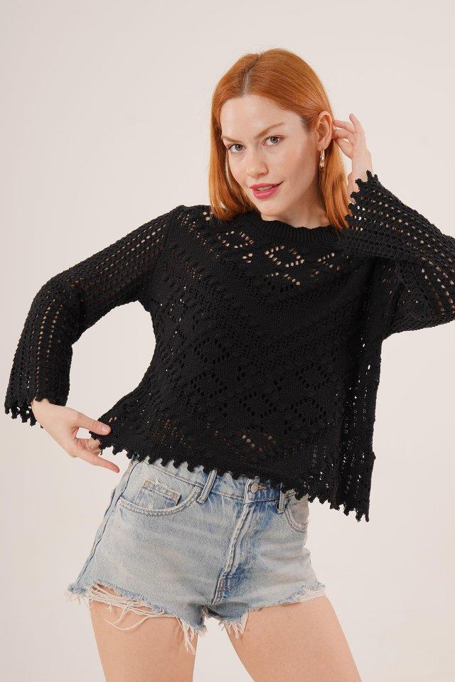 Ajurlu Delikli Model Mevsimlik Siyah Kazak