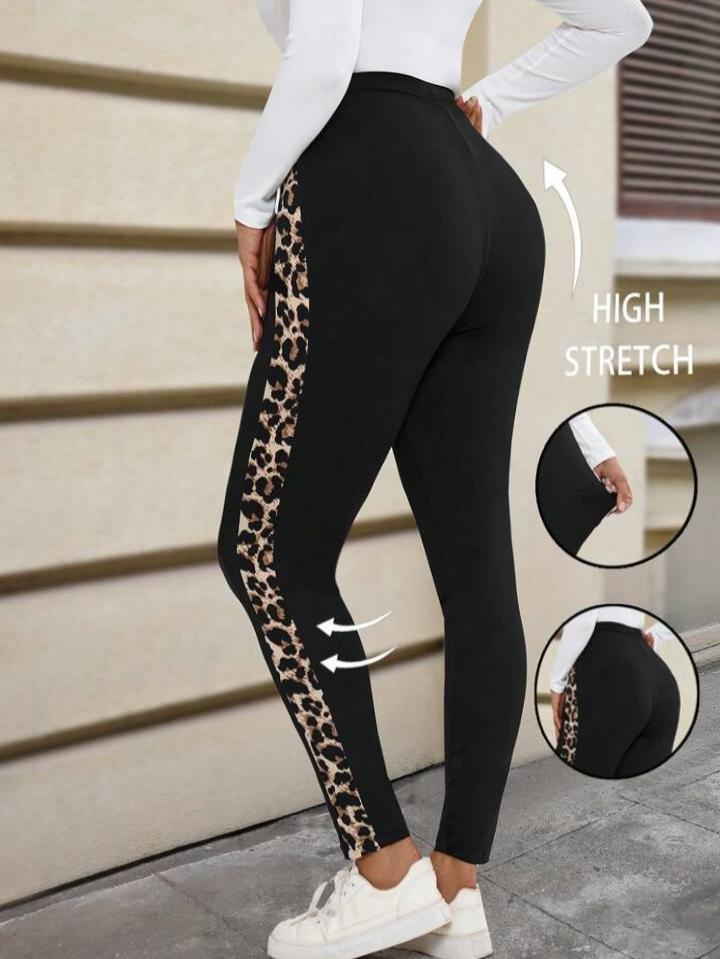 Kadın Yüksek Bel Yanları Leopar şerit Detay Dalgıç Tayt