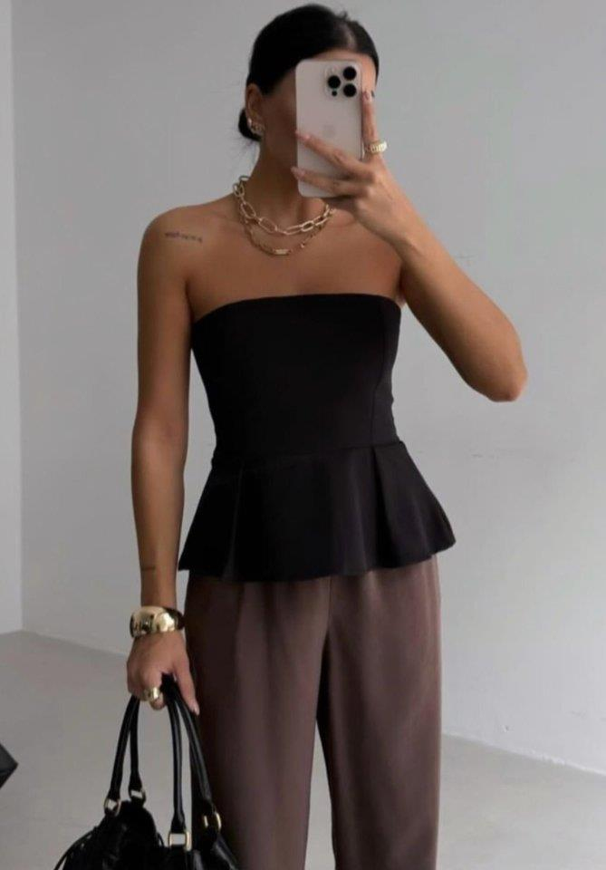 Pileli Straplez Bluz
